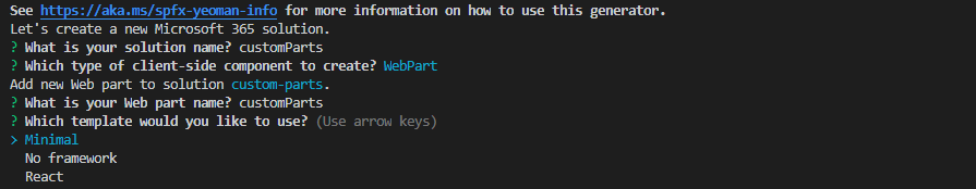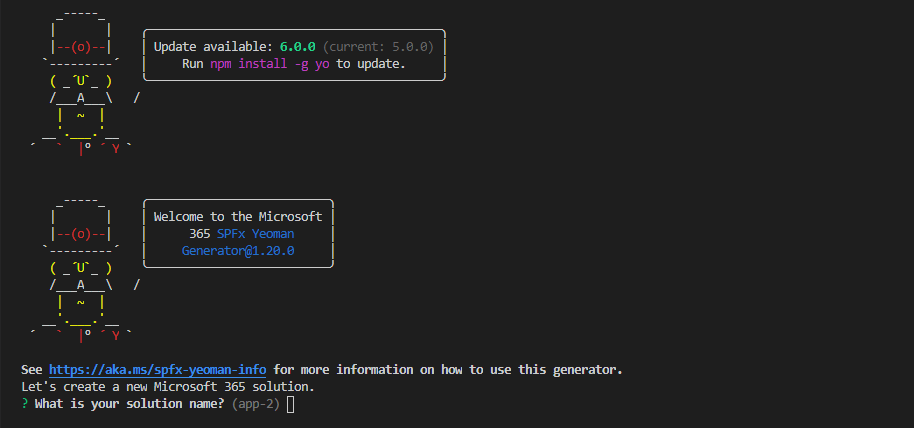 2.SPFxプロジェクトと証明書を作成⇒VSCodeのターミナルでコマンドを実行し、プロジェクトを作成します。