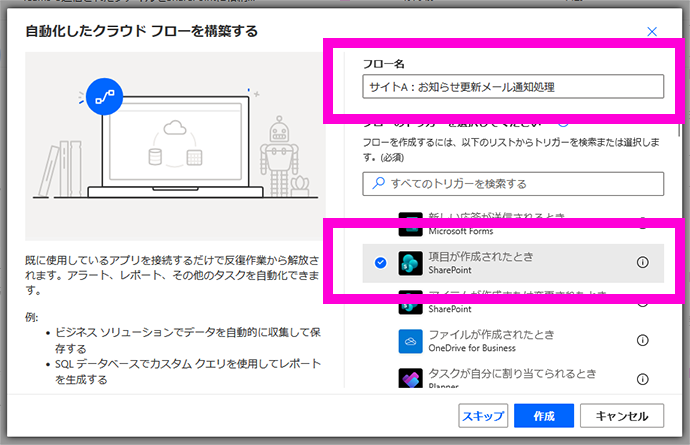 - 項目が作成されたとき(SharePoint)