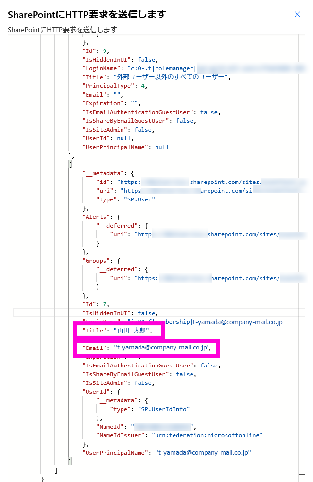 この中に、メンバーのメールアドレスや氏名が表示されていれば、データが正しく取得できています。